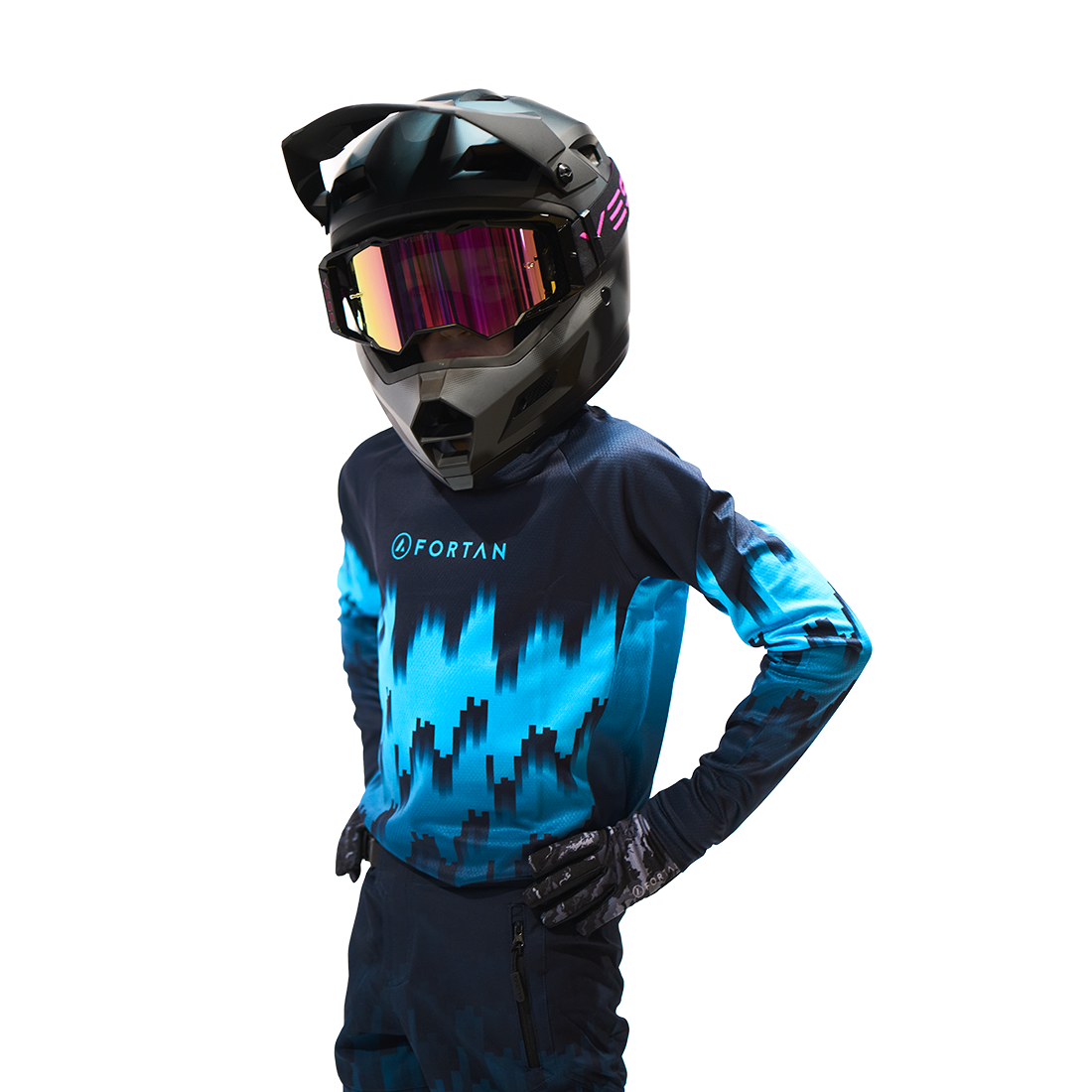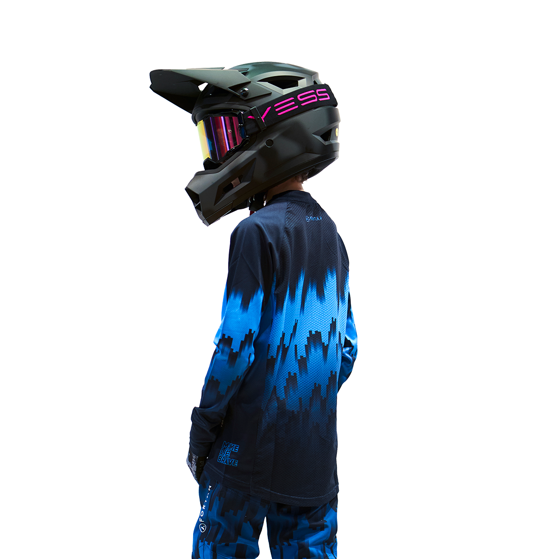 The bold digital wave design in contrast blues, brings something different from the norm, perfect for shredders who like to stand out on the trails.