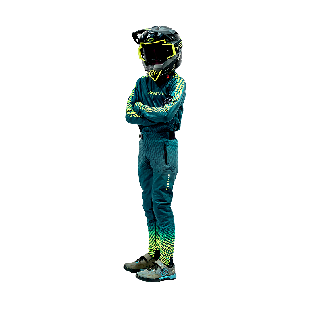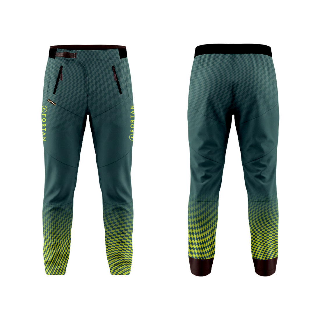 Featuring our deep Teal colourway with subtle race pattern on the body and contrast neon green logo detailing and race chequred pattern fading to the ankles.