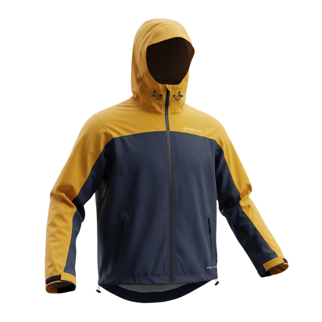 The Men's Sender Trail Jacket in Navy/Mustard is a valuable addition to your gear. It boasts a durable 3 layer fabric construction, complete with a waterproof membrane layer to effectively block out moisture. This jacket is perfect for all types of outdoor activities, including biking, hiking, walking, running, and more.