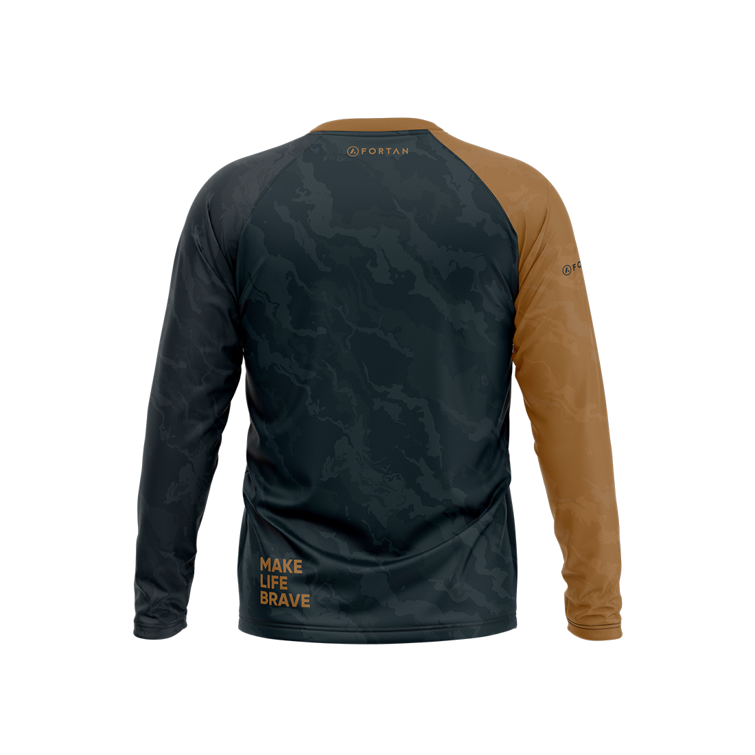 Designed using our brand blue and mustard colourway and with a subtle camo design affect though the colour, with contrast arm.