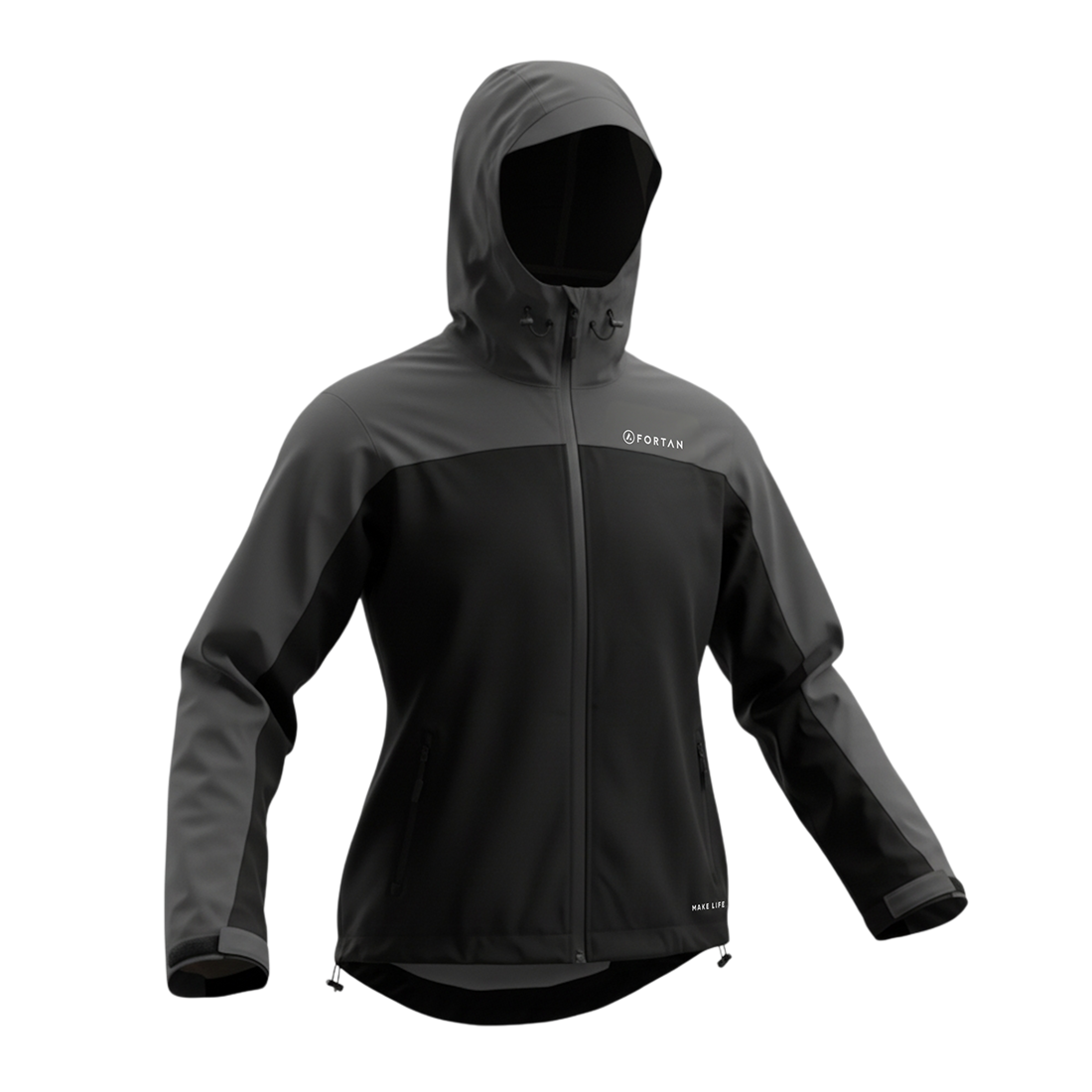 - Drawstring hood and waist for easy adjustment