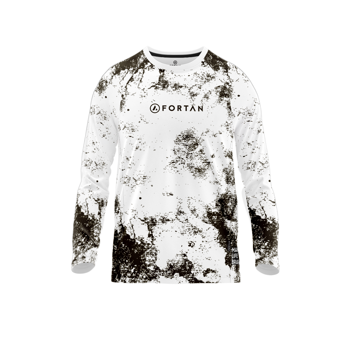 Featuring our bold white jersey with grunge design, subtle, yet striking - something a little different from the norm.